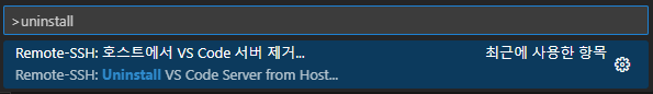 'Remote-SSH: Uninstall VS Code Server from Host...' 클릭하고