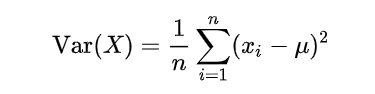 | 표본의 편차제곱의 평균 | X의 편차와 Y 편차를 곱한 것의 평균 |