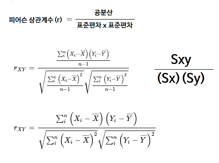- 위에서 구한 상관계수가 바로 피어슨 상관계수입니다.